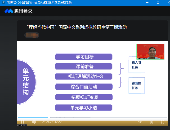 在第一期活动中,北京语言大学讲师史艳岚结合《高级中文听说教程》第九单元的内容给我们带来教学示范;在第二期活动中,北京语言大学教授沈庶英就《高级中文读写教程》第一单元如何进行教学展开深入讲解;在第三期活动中,复旦大学副教授路广围绕《高级中文听说教程》第八单元的话题带领大家一起研讨交流。