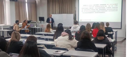 高书记在向学生介绍了二十届三中全会精神中关于深化教育综合改革相关内容的基础上,分享了习近平总书记《论教育》的相关精神以及9月份全国教育大会中有关教育强国的相关举措,基于上述内容,高书记还以张桂梅为个案介绍了中国教育界所提倡的教育家精神。考虑到现场学生文化背景和语言水平的差异,高书记在讲座中也补充了中国相关国情和文化知识背景,以帮助大家了解所讲授的内容。