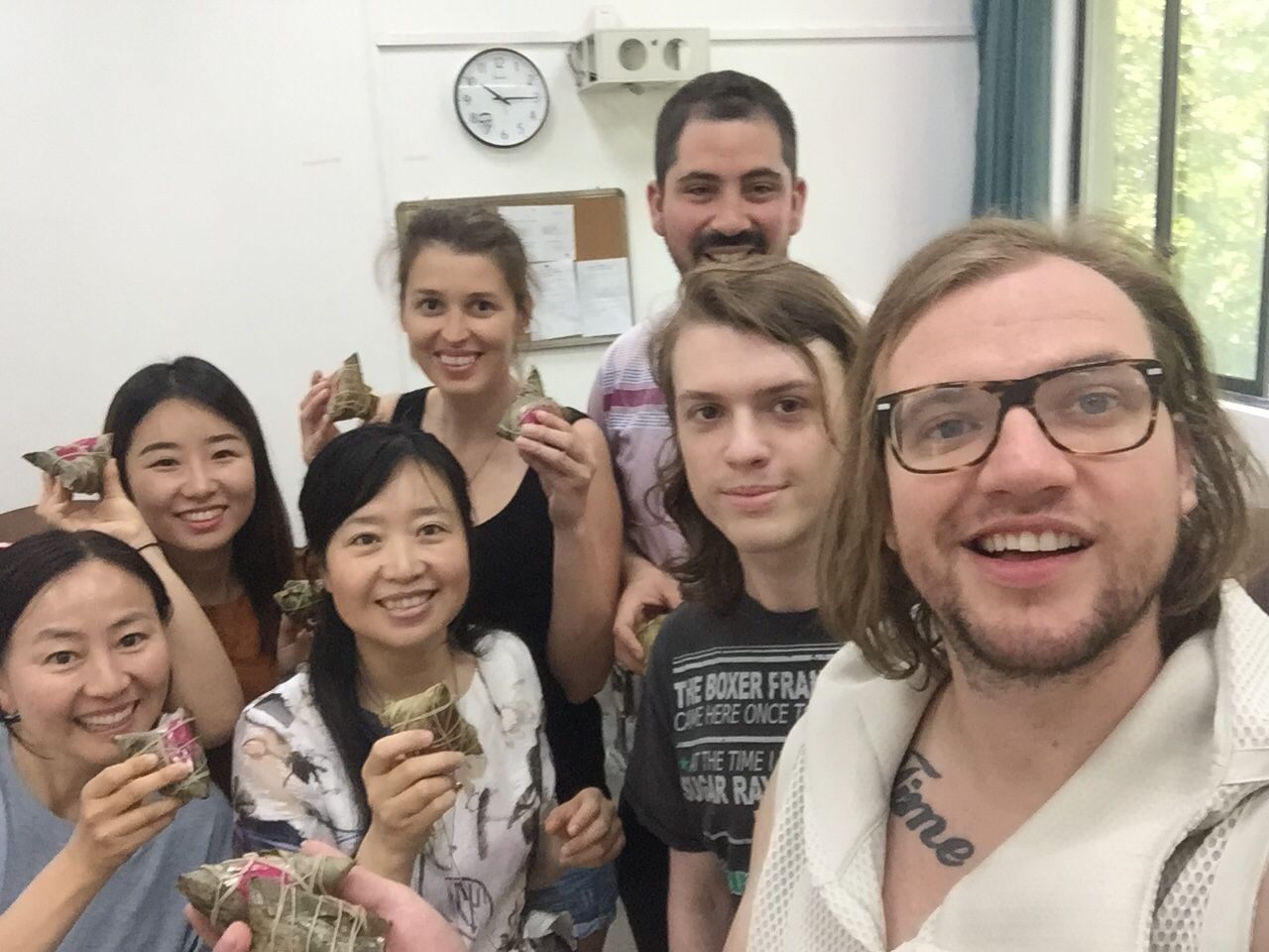 活动主要包括三个环节。首先,海外教育学院的老师们生动、详细地为留学生讲解了端午节的历史与文化渊源,以及流传至今的各地风俗,学生们兴趣盎然。接着,在品尝粽子的过程中,许多留学生对这一传统端午美食的外形、制作工艺及其文化象征意义都有了更为深刻的认识,一些学生还就此与自己国家的类似节日、风俗与相关食物进行了对比。随后,在老师的引导下留学生们围绕传统节日在各国当代文化中的积极作用及发展方向进一步展开了讨论,现场气氛十分热烈。