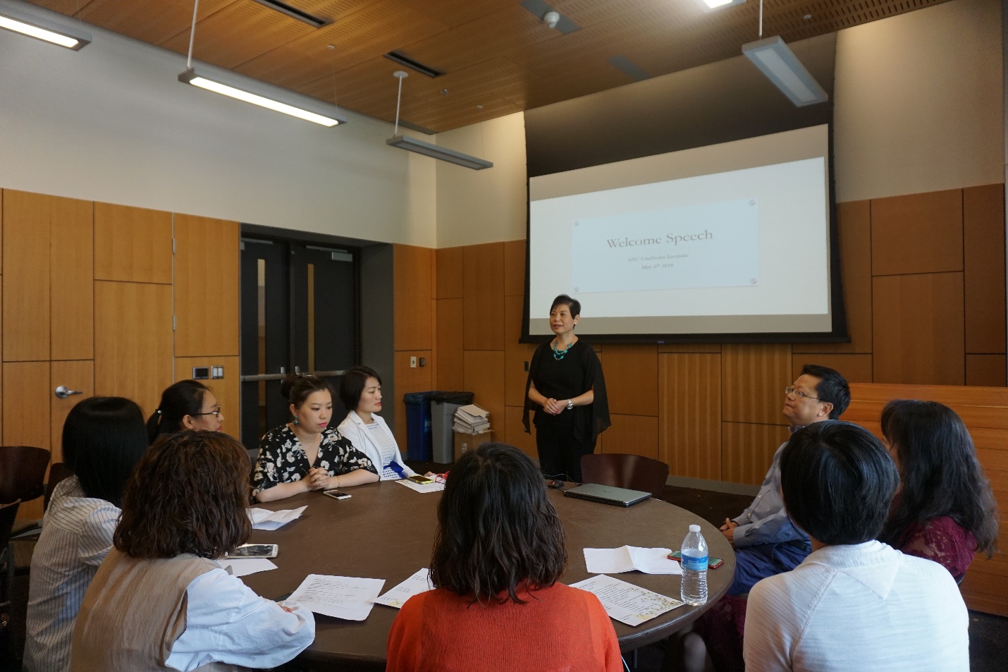 当地时间5月6日,美国亚利桑那州立大学孔子学院为即将离任的10位汉办教师举办了一场隆重而温馨的“教师感谢日”活动。中方院长关平,外方执行院长谭徐智萍以及孔子课堂教师所在学区的三位外语教学负责人兰可丽(Cristina Ladas)、霍普拉姆兰德(Hope Loveland)、杰米迈瑞尔(Jamie Merill)也参加了此次活动。