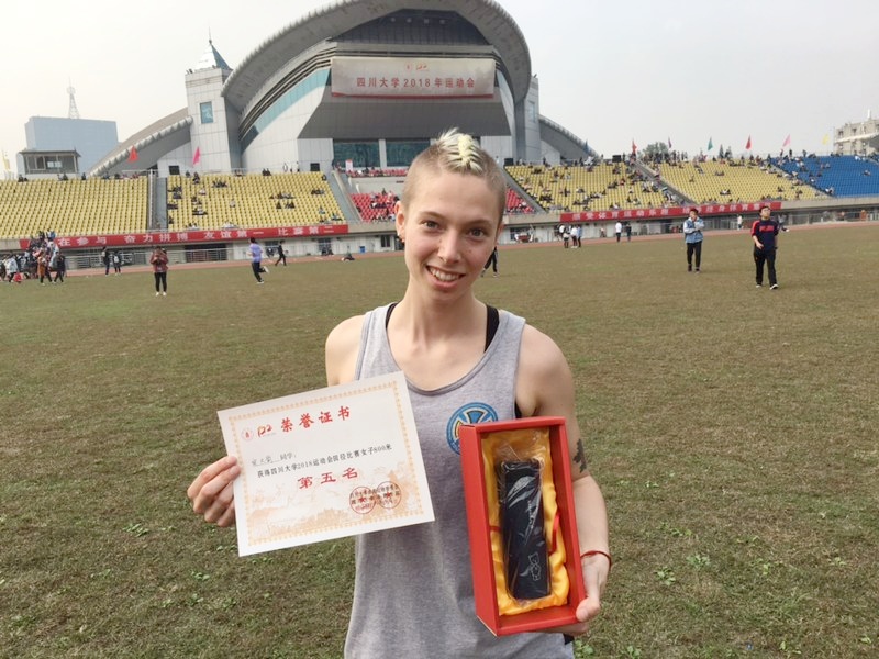 10月27日上午,我院寇火箭同学以2分55秒71的成绩获得女子800米决赛的第5名。随后,在下午举行的女子1500米决赛中她又再接再厉,以6分04秒64获得了第二名的优异成绩!来自法国的 Tourneur同学也在男子1500米决赛中以5分10秒73获得了第10名的好成绩。