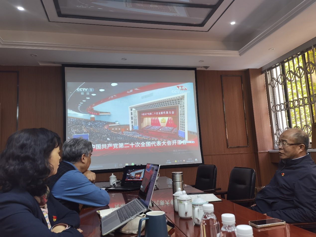 凝心聚力擘画复兴新蓝图,团结奋进创造历史新伟业。10月16日上午10点,中国共产党第二十次全国代表大会在人民大会堂盛大开幕,习近平总书记代表第十九届中央委员会向大会作报告。海外教育学院领导班子、全体支部委员、行政人员在学院二楼会议室集中观看盛会,教师在家收听收看盛会直播,用心领悟大会精神,共同见证这一庄严时刻。