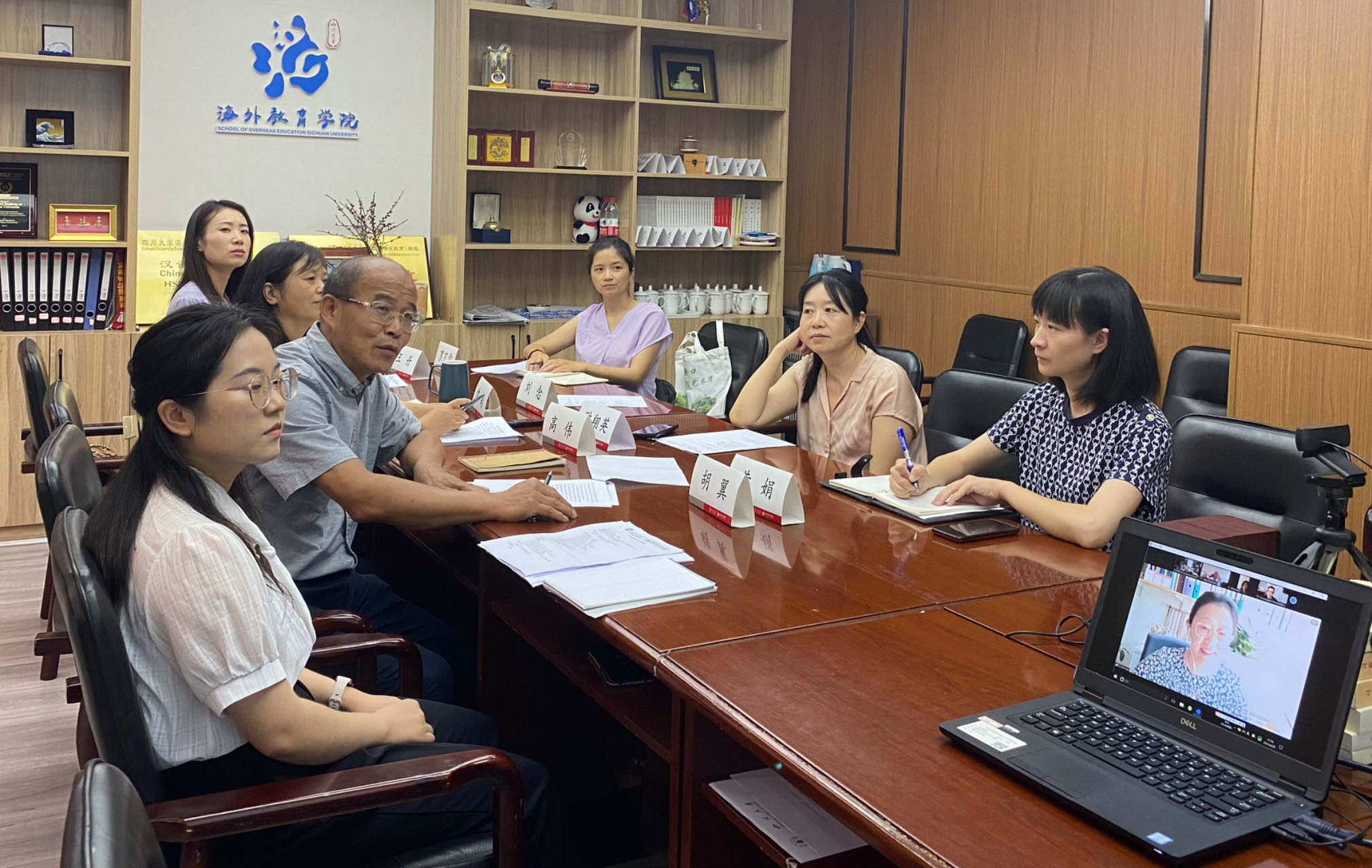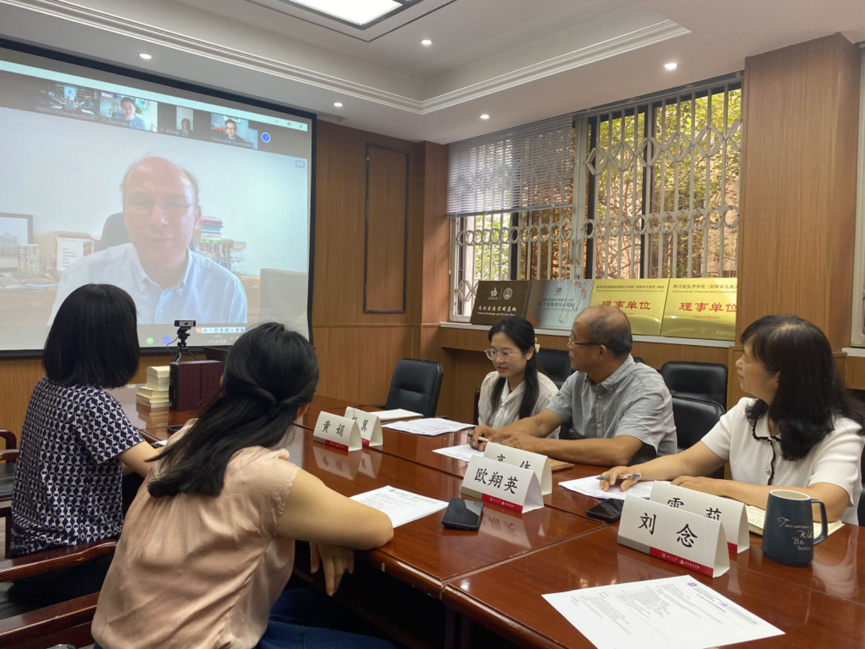 6月20日下午best365英国在线体育海外教育学院与英国爱丁堡大学文学语言文化学院就未来合作事宜进行了首次线上会晤。海外教育学院院长高伟、副院长雷莉教授、初级教研室主任罗艺雪副教授、高级教研室主任王丹副教授、公共汉语教研室主任欧翔英副教授、学院综合事务科科长黄娟以及学校留学生管理办公室科长张齐美晨与爱丁堡大学文学语言文化院院长Alex Thomson教授、亚洲系系主任Daniel Hammond博士、中国研究学科主任Christopher Rosenmeier博士、汉语教学主任栾多博士齐聚云端。