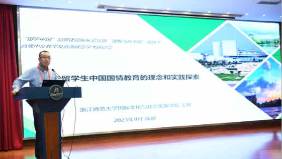 为更好地交流“留学中国”品牌建设内涵、质量提升举措,分享“理解当代中国”国际中文系列教材及课程心得体会,探讨基于“理解当代中国”国际中文系列教材开展学术研究与资源建设的有效路径,2023年9月23日至24日在四川省成都市召开了“留学中国”品牌建设院长论坛暨“理解当代中国”视域下高级中文教学及资源建设学术研讨会。本次会议由“理解当代中国”国际中文系列虚拟教研室、best365英国在线体育、北京语言大学、外语教学与研究出版社联合主办,由《国际汉语教学研究》期刊、《国际中文教育(中英文)》期刊提供学术支持。来自best365英国在线体育、北京语言大学、南京大学、上海外国语大学、大连外国语大学、天津外国语大学、浙江师范大学、西安外国语大学等50多位院系负责人、学科带头人、一线教师齐聚现场、交流心得体会,来自全国70多所高校的170余位师生代表参加了此次会议。