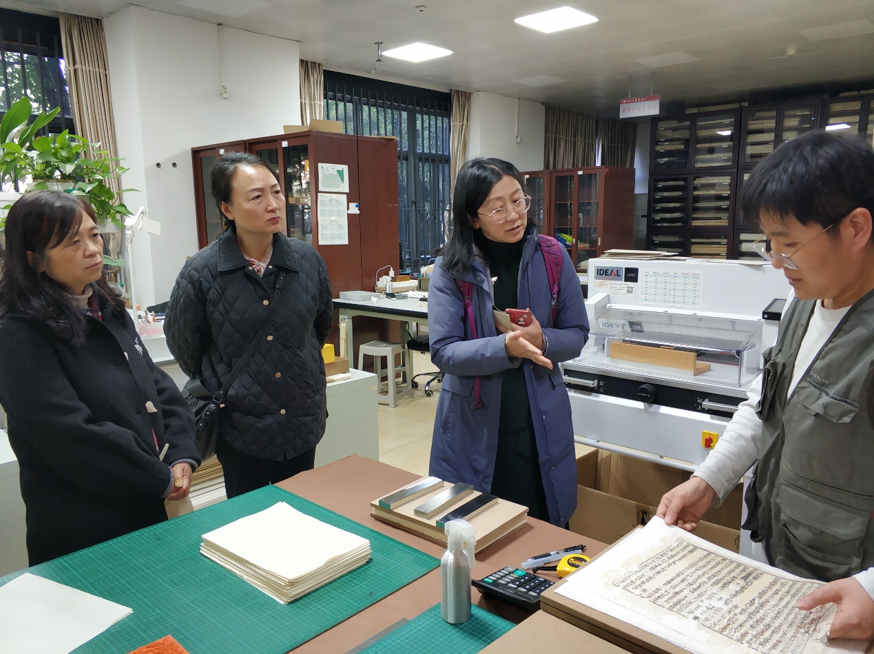 参观图书馆期间,图书馆馆长兰丽琼及古籍特藏中心李咏梅主任,专程陪同栾多教授参观了best365英国在线体育古籍保护中心以及在best365英国在线体育博物馆展出的“册府千华·锦水含章--best365英国在线体育古籍菁华展”。栾多教授对古籍保护中心老师的工匠精神表示折服,对古籍展中的稀世珍本表示震撼,表示回到爱丁堡大学后一定会把best365英国在线体育图书馆推荐给爱丁堡大学的同仁们。