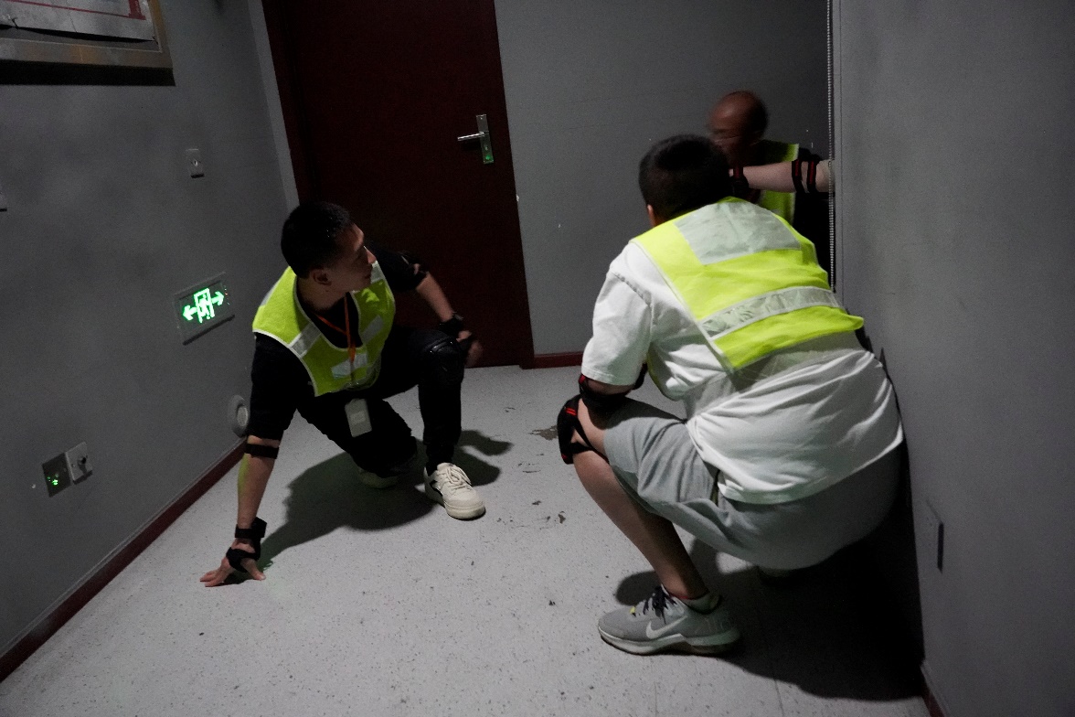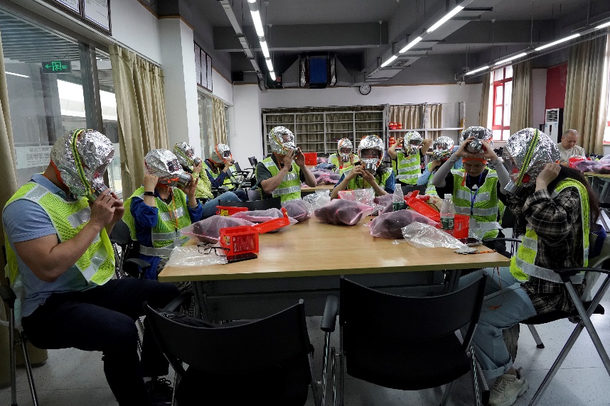 最后,大家在灾后重建管理学院安全应急技能训练中心开展疏散演练,围绕“火灾预警”“人员疏散”等环节分小组进行实操。