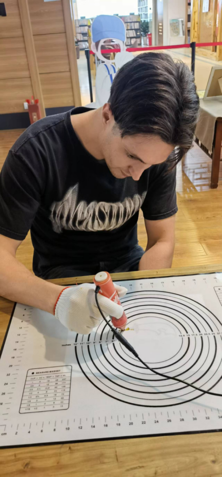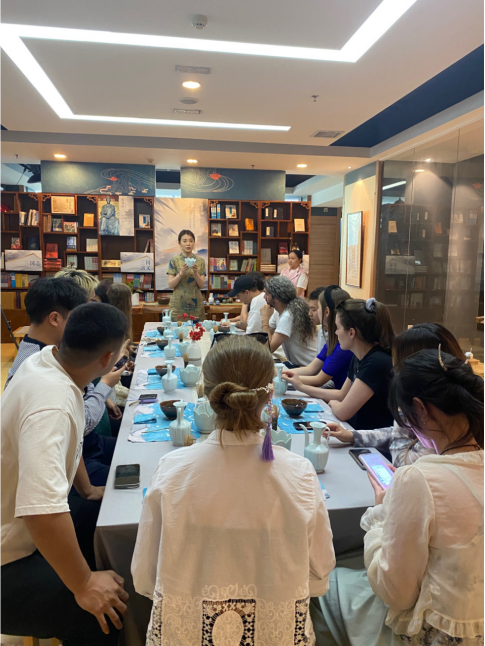 在传统文化活动体验环节,留学生们分组体验了不同的中国传统文化。拓印扇子组的同学们制作出了属于自己的特色扇子;诗词拓印组的同学们感受到诗词与传统技艺的完美结合;糖画组的同学们亲眼目睹了糖画艺人的精彩技艺并亲手尝试;捏泥人组的同学们发挥想象力创造出有趣的泥人造型;投壶组的同学们充分感受到古代投壶游戏的乐趣;茶艺组的同学们更是沉浸于非遗项目宋代点茶的茶艺文化和技法之中。