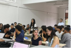 在破冰环节,中外学生们作了自我介绍,建立起了初步的相互了解。接下来,同学们在观看了两段视频后,就体育教育的有关话题进行了热烈的小组讨论和全班分享。中国同学率先发言后,留学生姜省旭、青野舜、白馨婷等同学也向全班分享了自己最喜欢的运动项目,以及该项目在自己国家中小学的普及情况。