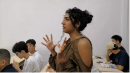 反响最热烈的是辩论赛环节。在这个环节中,同学们就“体育教育是否应该成为学校教育的核心课程”这一辩题分为正反两方展开了激烈辩论。留学生们积极思考,踊跃发言。姜省旭、孙月玲、郭兆硕等同学不仅提出了新的思考角度,还能结合各自不同的文化背景与教育经历,为本方辩友补充新的论据。他们的精彩发言把课堂气氛推向了新的高潮,教室里不时爆发出阵阵热烈的掌声和欢笑声。