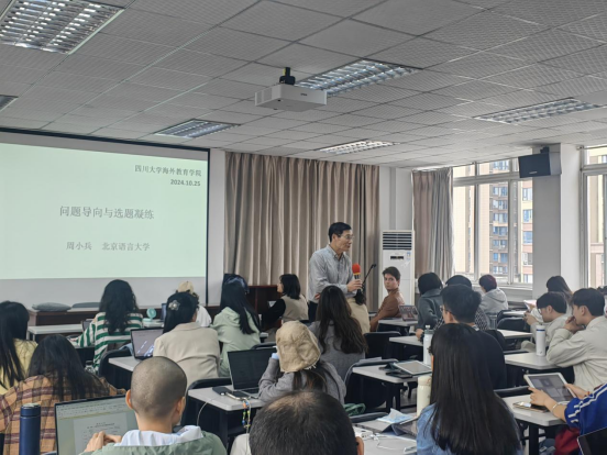 2024年10月25日,北京语言大学汉语国际教育研究院教授、国际中文教材研发中心主任、世界汉语教学学会学术指导委员会成员周小兵受邀在我院六楼报告厅作了题为《问题导向与选题凝练》的学术讲座。我院教师、留学生以及汉语国际教育专业研究生参加了此次讲座,讲座由副院长雷莉教授主持。