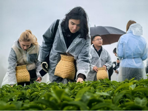图5.塔吉克斯坦学生狄芙拉体验采茶