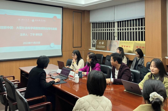 2024年11月22日晚,受我院邀请,北京大学中国社会科学调查中心研究员、副主任丁华教授在学院二楼203会议室作题为“理解中国:大型社会科学调查数据的应用与发展”的专题学术报告。本次报告会旨在为我院师生拓宽视野,打破学科围墙,探索“中文+调查实验”的研究模式,在树立“学科意识”的基础上增强“跨界合作”意识。我院教师、汉语国际教育专业研究生参加了此次报告会。副院长雷莉教授主持报告会。