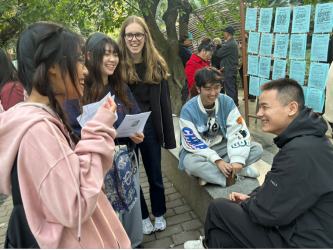 2024 年 11 月 21 日,在我院鲜丽霞教授的带领和指导下,“语言实践-3”课程的留学生们开展了一次别开生面的语言实践活动。此次活动聚焦当代中国人的婚恋观,留学生们先后来到人民公园相亲角和太古里潮人街区进行细致观察,并对现场的长辈与年轻人进行了采访。