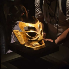 伦敦大学亚非学院赫瑟(Heather)同学表示:“诸多面具在脸型、鼻部与眼部形态上呈现高度相似性,但后续展品中面具顶部渐趋圆润。尤为震撼的是覆有金箔的面具——金箔材质极其脆弱,历经数千年仍能保持完整形态,实难想象当代复原所需耗费的工时。”