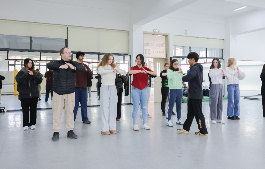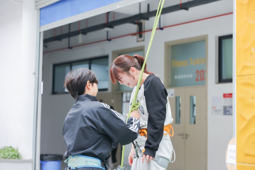 行至体育学院,留学生们首先集体观赏了学院学生带来的武术表演。拳脚生风的演出生动展现了中国武术的刚柔并济,赢得阵阵掌声。随后,留学生们分为两批,一批体验传统武术的基本招式,在一招一式中感受中华武学的深厚底蕴,另一批则挑战攀岩项目,在安全防护下攀登岩壁,体验现代体育的活力与协作。无论是静心习武还是奋力攀登,留学生们都在亲身实践中深化了对中国多元文化的理解。