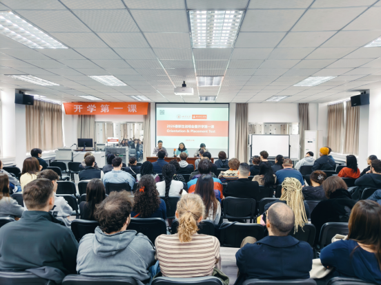 刘廷林老师为新生们进一步介绍了学校的整体概况、海外教育学院的基本情况及学院精心打造的各类文体竞赛、文化实践和研学活动。同时,他向新生们讲解了留学生相关的机构设置情况,强调了课程学习方面的具体要求,并帮助新生明确入学后的各项日程安排,为即将开始的学习生活明确目标和方向。随后新生们参加了汉语水平测试,他们认真地完成了本次测试,为本学期的学习开启了一个良好的开端。