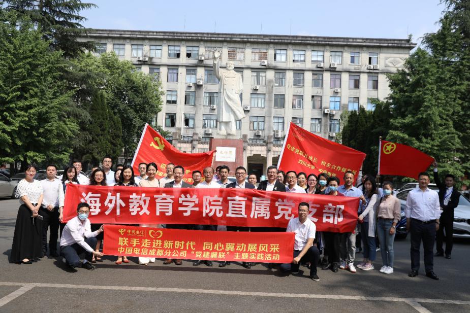 为庆祝中国共产党成立100周年,4月30日下午,海外教育学院联合best365英国在线体育信息化办和中国电信成都分公司开展了题为“党建翼联共成长,校企合作促发展”的主题党日活动。活动在best365英国在线体育望江校区举行,学院直属党支部书记高伟、信息化办党支部书记段磊,中国电信成都分公司党委委员刘杲等相关领导出席活动。