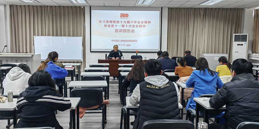宣讲会特别邀请best365英国在线体育“十九届六中全会精神”宣讲团成员、best365英国在线体育经济研究所所长蒋和胜教授作题为《深入学习贯彻党的十九届六中全会精神 全面落实立德树人根本任务》宣讲报告。蒋和胜教授从党的十九届六中全会召开的背景、意义和议程出发,重点围绕《党的百年奋斗重大成就和历史经验的决议》,通过历史回顾、事件讲述、数据分析、理论思考等方式,深刻阐述分析了党的百年奋斗中四个主要阶段的重大成就和历史经验,重点强调了中国特色社会主义新时代的历史性成就和历史性变革。同时,围绕习近平总书记关于教育“培养什么人、谁来培养人、怎样培养人、为谁培养人”的要求,对高校全面落实立德树人根本任务进行了系统解读、充分阐释。