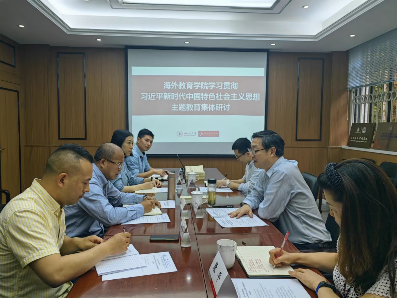海外教育学院中心组成员围绕认真贯彻落实习近平总书记重要讲话精神,牢牢把握 “学思想、强党性、重实线、建新功”的总体要求和坚持学思用贯通、知信行统一的根本任务,结合各自的工作交流了学习体会。